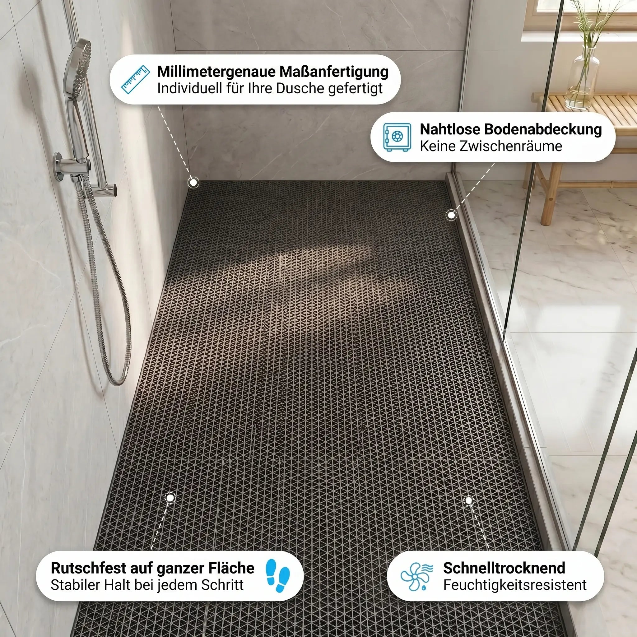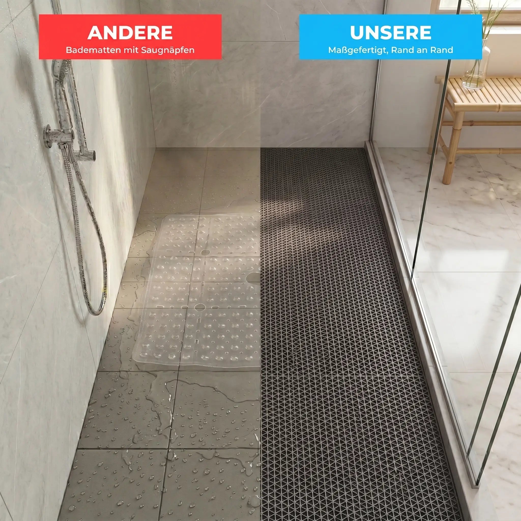 Ja. Die Matte bleibt während des Duschens sicher an Ort und Stelle und reduziert die Rutschgefahr deutlich.